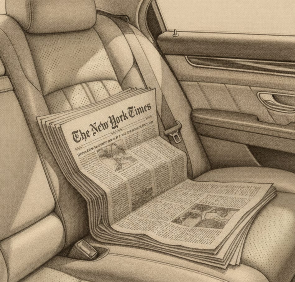 The picture is of the President, of course. I took it myself, years ago, in the days before I was asked not to carry a camera anymore. The President, in the photo, is in his limousine — I am in it with him, obviously, right there on the bench in the back — and he is sitting forward, tense with pleasure, neck twisted, looking up. His eyes are trained on, trained through, the glass of the limousine sunroof. And above us, high above — so high that you cannot see it in the picture, not at all, but I’m telling you, it was there — is a crowd of men and women and children, gleaming.